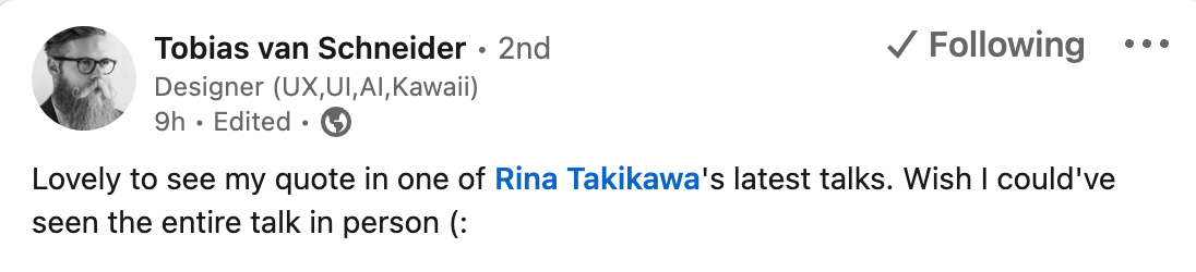 I finished my talk with one of my favorite quotes (and a banger) by Tobias van Schneider, and wow did it blow up.